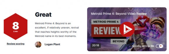 IGN简评:《银河战士Prime4:超越》是一款出色的复兴之作,虽然略显参差,但其最精彩的部分达到了无愧于《银河战士》之名的高度。