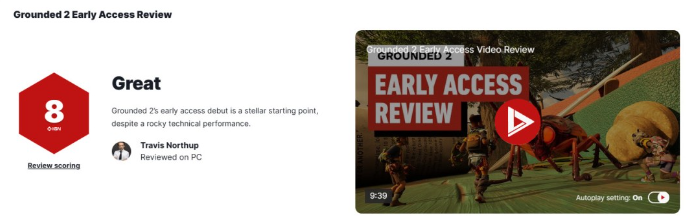 黑曜石独立游戏《禁闭求生2(Grounded 2)》抢先体验版首批媒体评分出炉,IGN给出8分好评。
