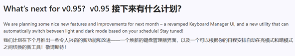 同时微软还透露了其下一个版本的计划,在0.95版本中,微软将解决Windows 11和10中长期缺失的一个功能:自动主题切换。