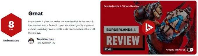 《无主之地4》IGN 8分 开放世界进化成功但Bug拖后腿