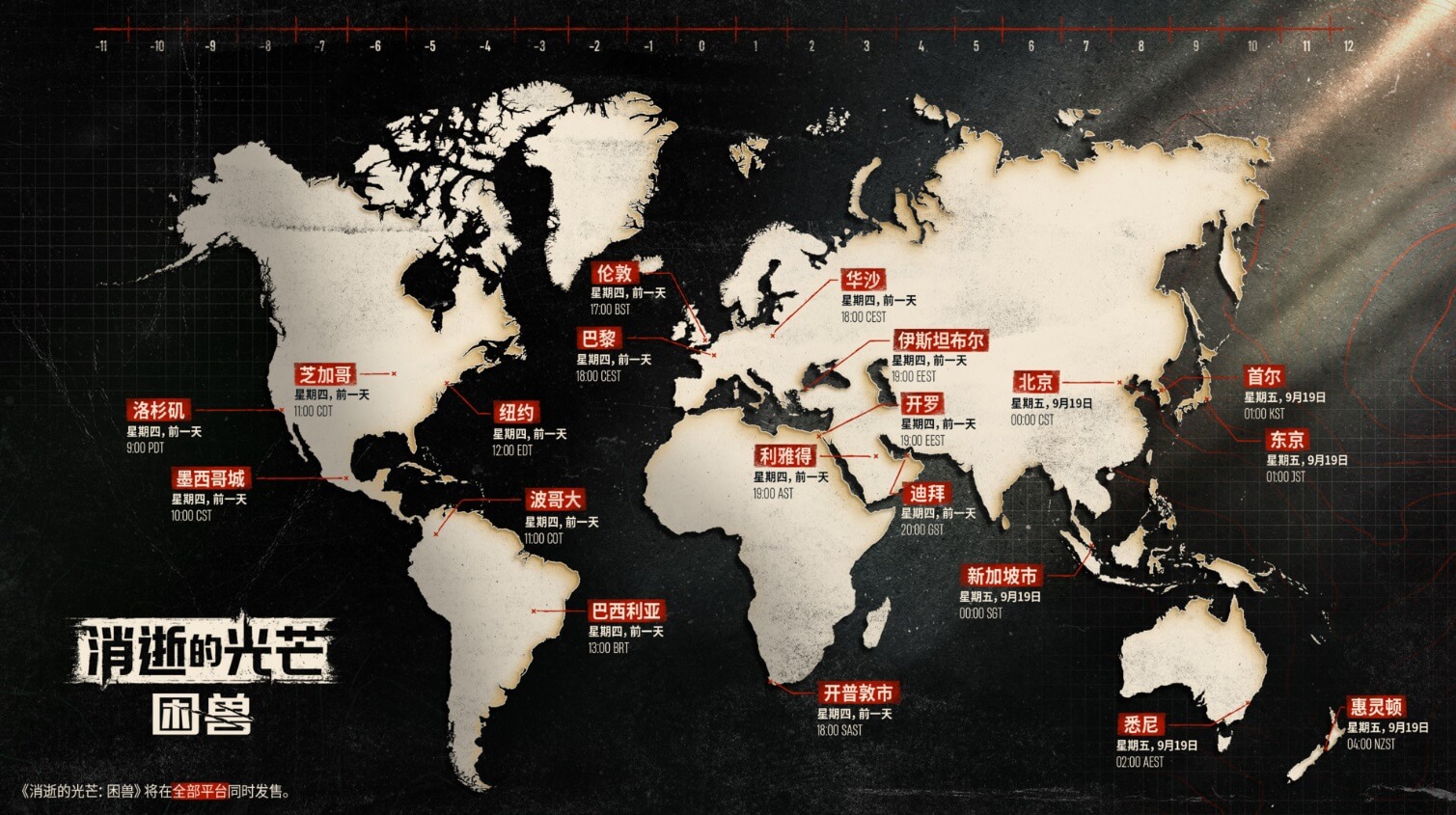 Techland工作室于9月12日宣布,原定于9月20日发售的《消逝的光芒:困兽》将提前一天上市。由于时差影响,北京时间仍为9月19日凌晨0点,届时全球PC与主机平台玩家将同步开启在河狸谷的复仇之旅。