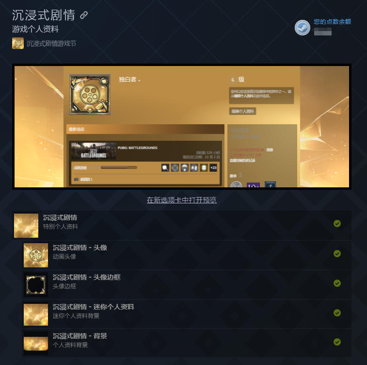 游戏节启动初期,Steam曾出现技术故障导致该套装显示为付费内容,目前问题已修复,所有玩家不论积分余额均可领取。若找不到该套装,可点击Steam导航栏"浏览"按钮进入积分商店,在"游戏资料"标签页查找金色主题的"沉浸式剧情"套装。
