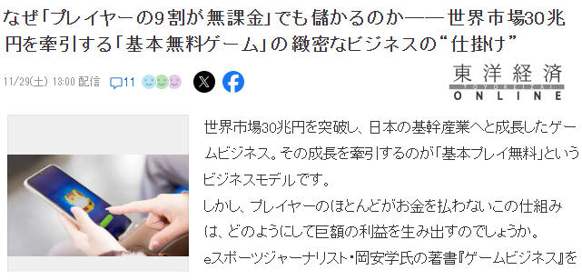 当今游戏领域,基本游戏免费,特殊服务收费的运营模式游戏市场规模已经远远超出玩家意料之外,据日本分析机构报道,目前世界免费游戏市场规模突破30兆日元,但是仅有一成的氪金玩家在实际支撑开发商的开发运营成本。