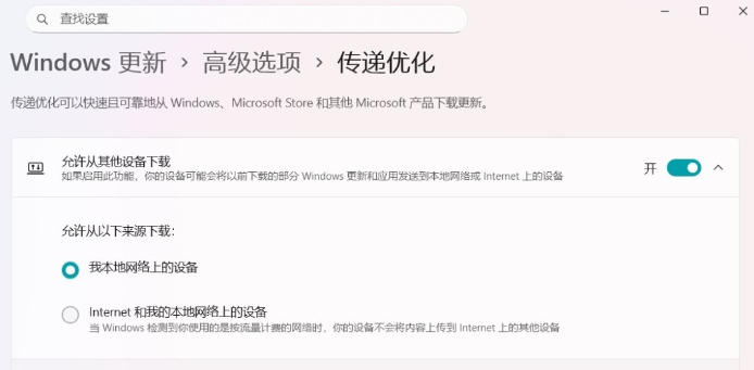 3、关闭“允许从其他设备下载”开关,或者将其限制为“我本地网络上的设备”。