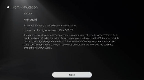 不过在游戏黯然退场的结局下,一则关于退款的消息给玩家们带来了些许慰藉。据多位海外玩家反馈,PlayStation平台已经开始主动处理《巅峰守卫》相关的消费退款。有玩家在Reddit论坛晒出截图称,即便没有提交退款申请,也收到了来自PlayStation的通知——由于游戏已无法访问,此前购买内购内容的款项将原路退回或返还至PSN账户钱包。